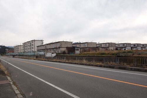 御所市の県営秋津団地 奈良県御所市郊外を走っていると水田の中に突然大きな団地が現れ、古めかしいコンクリート製の建物が並んでいる。